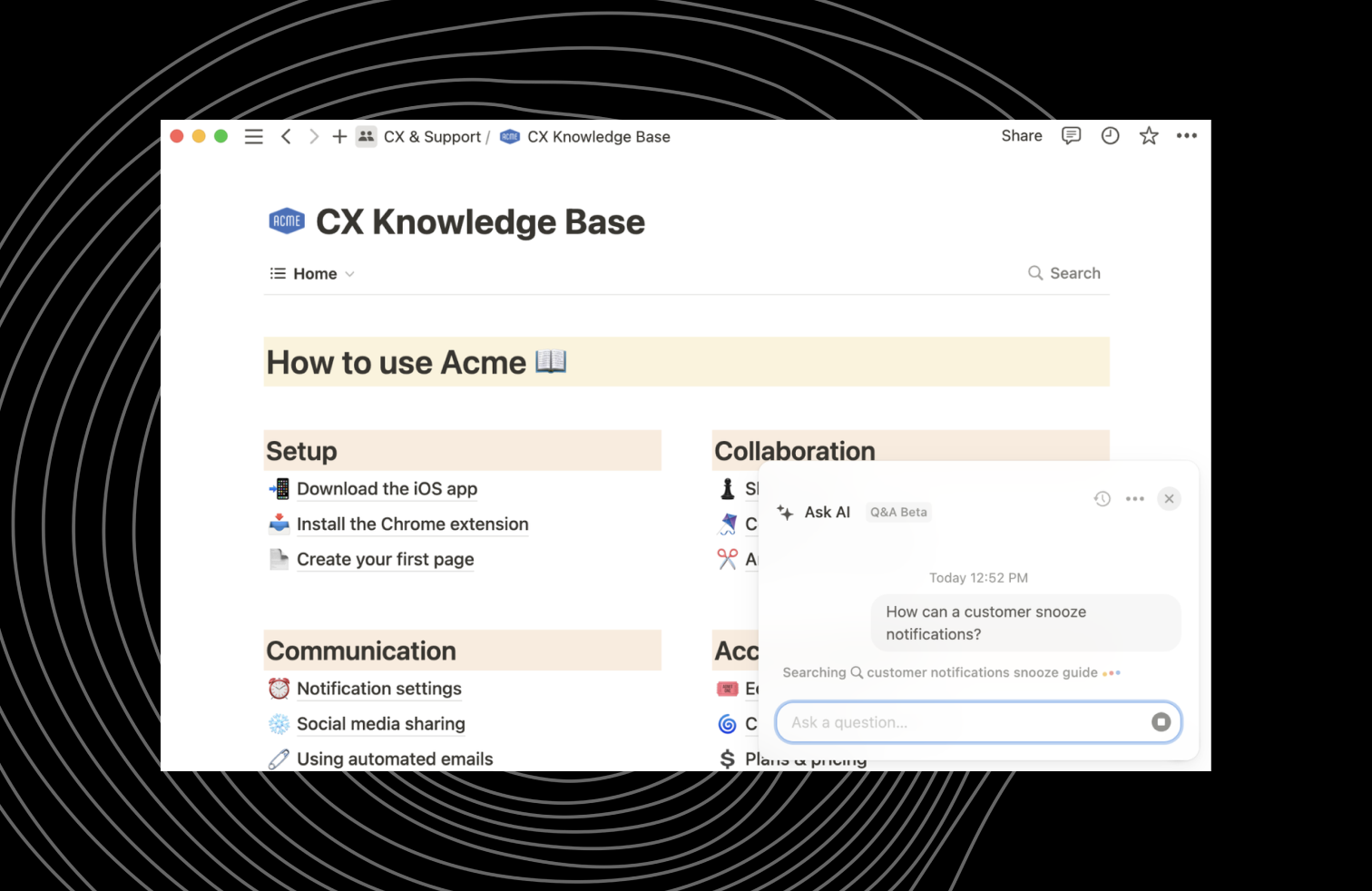 Q&A function powered by AI to create a knowledge base for your internal teams